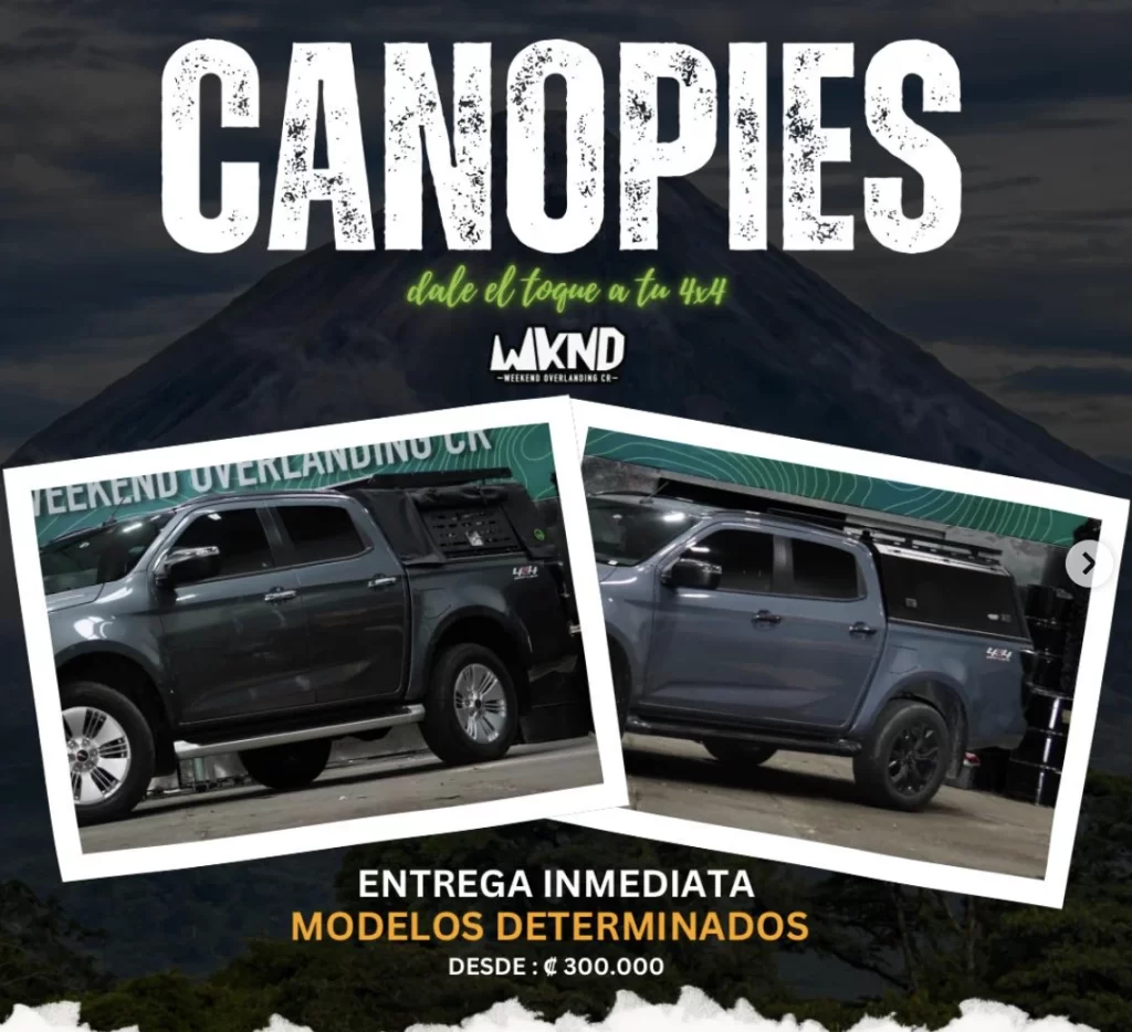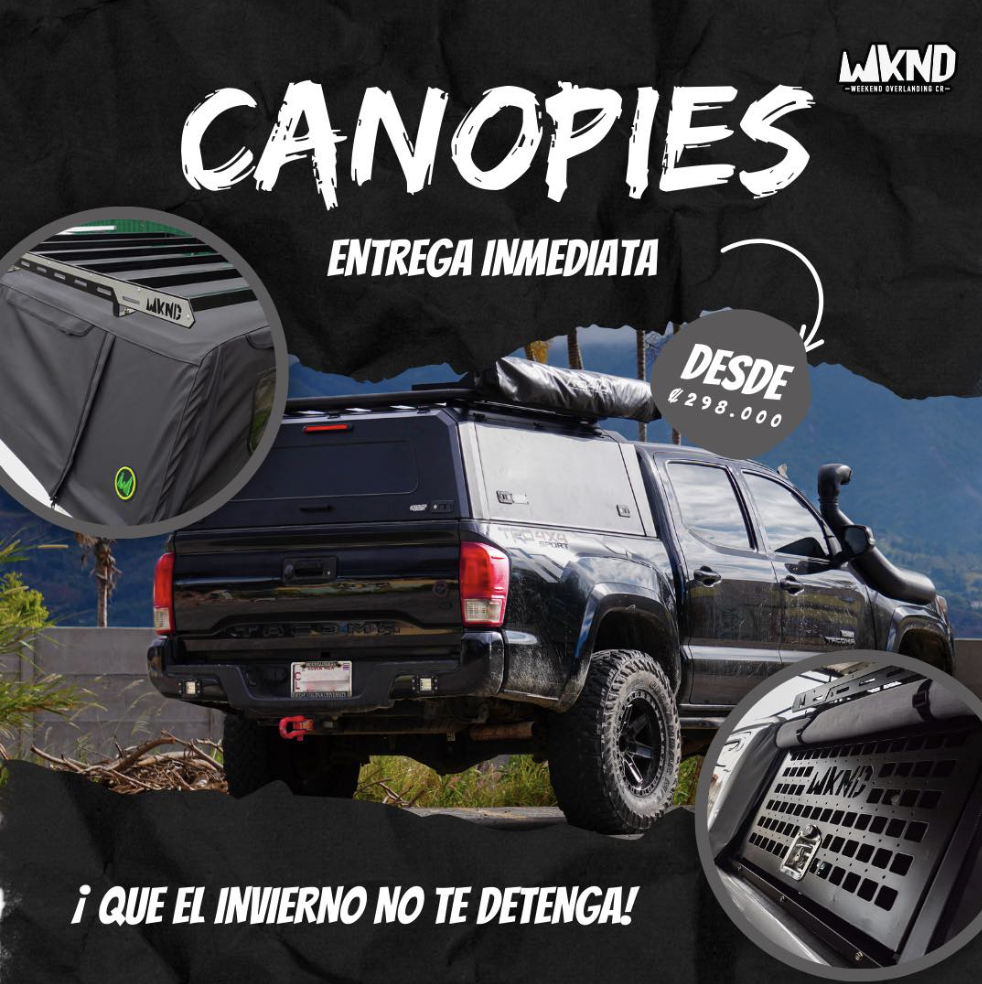 OFERTAS ESPECIALES Cobertores de asientos Variedad de Canopies Bed Racks Tapa Dura Tipo Trifold Variedad de Canopies para tu pick up Variedad de Marcas, Colores y Tamaños Cobertores tácticos Acompaña nuestros canopies con los accesorios de Kop Variedad de Plataformas y Canastas